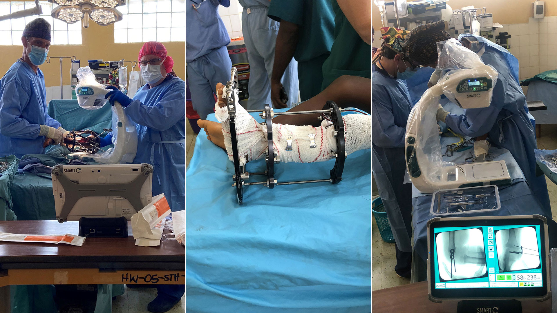 Other cases involved using the SMART-C® to X-ray the hips of two adolescent girls suffering from slipped hip joints. Other cases involved procedures to cut leg bones and correct severe bowlegs and apply external fixators. Another involved repair of a complex nonunion of the tibia in a 4-year-old child, and inserting an internal rod and an external fixator, to induce healing. “Without having a C-arm, this would have been impossible to do,” Dr. Herzenberg notes.